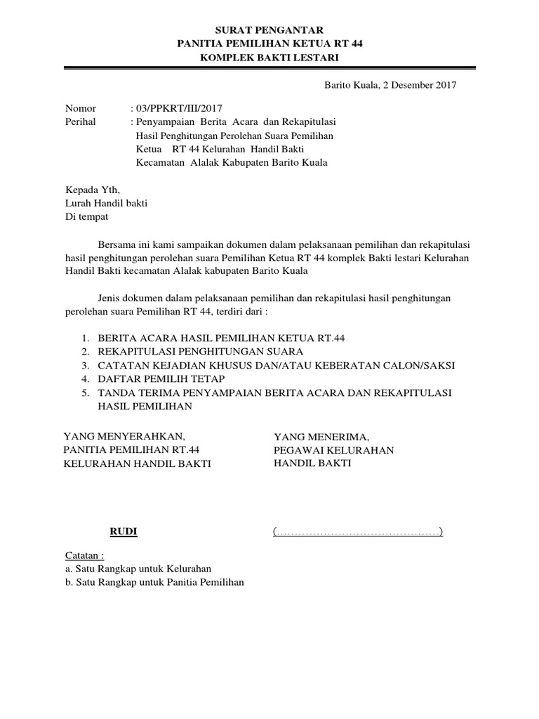 Sehubungan hal tersebut di atas kami panitia penyelenggara pemilihan ketua rw. 36 full pdfs related to this paper. Contoh surat permohonan menjadi ketua rt. Berita acara serah terima surat suara pemilihan ke. Beberapa contoh surat berita acara hasil pemilihan ketua rt yang baik 2019.